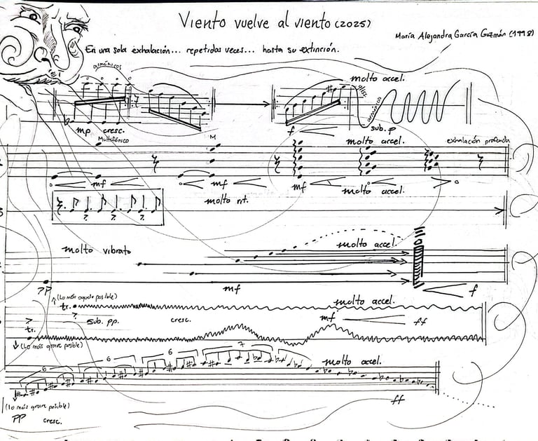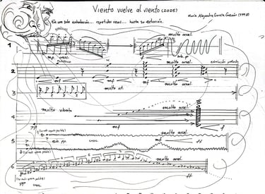 Este portafolio reúne una serie de obras muy queridas, desarrolladas en los últimos 5 años, las cuales exploran la música no como objeto cerrado, sino como fenómeno emergente. Música como sistema que piensa, cuerpos que actúan y se transforman, materiales que imponen su propio tiempo y texturas. En medio de un profundo amor y respeto por la naturaleza; protagonista como metáfora estructural.